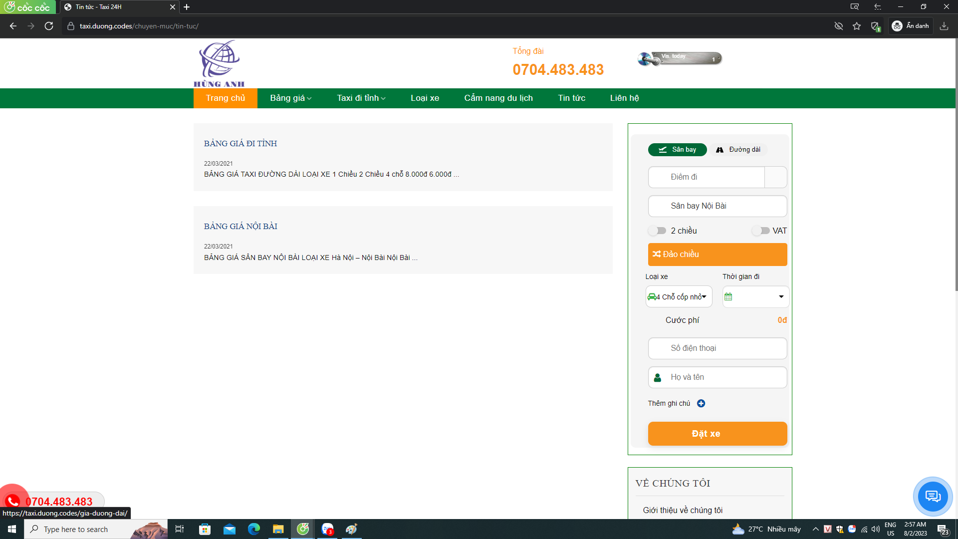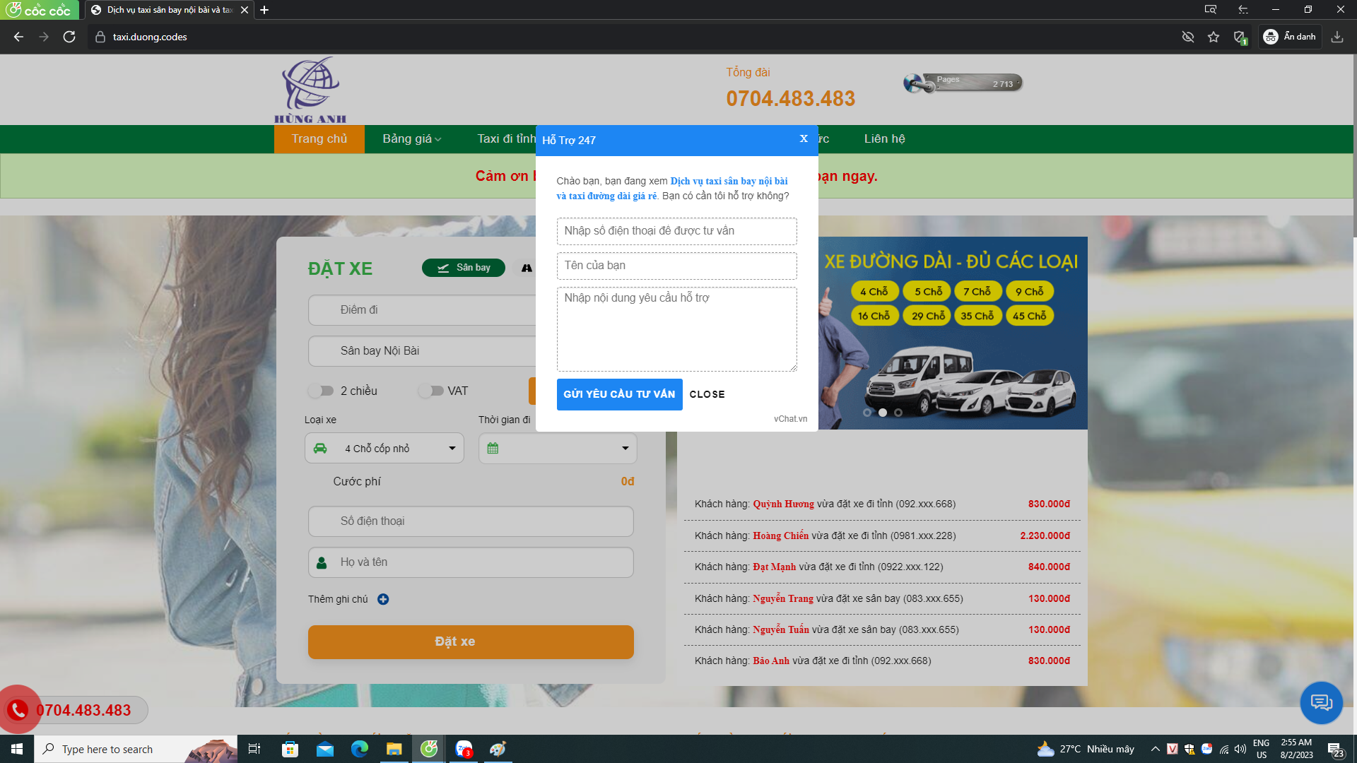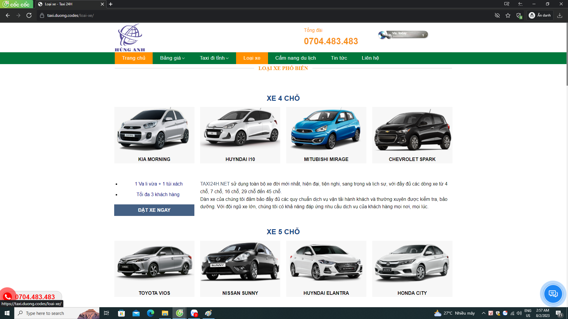 mã nguồn web thuê xe taxi chuẩn seo