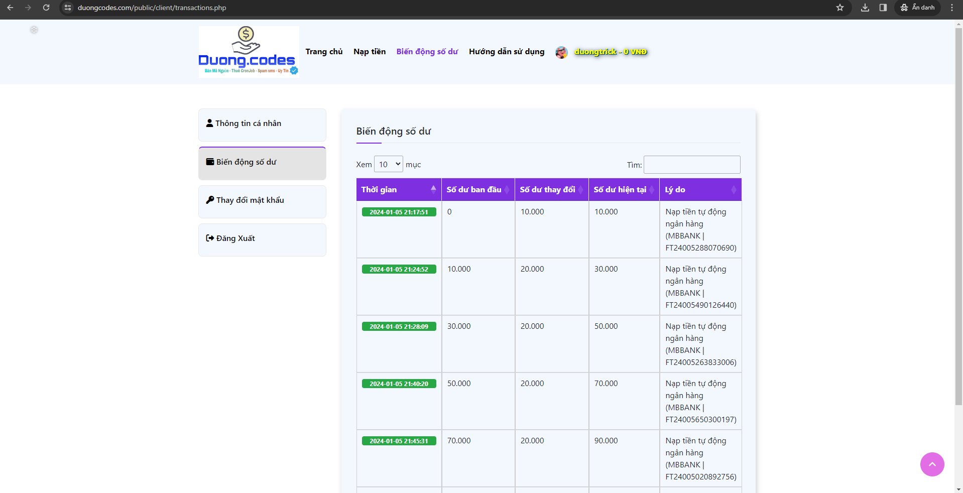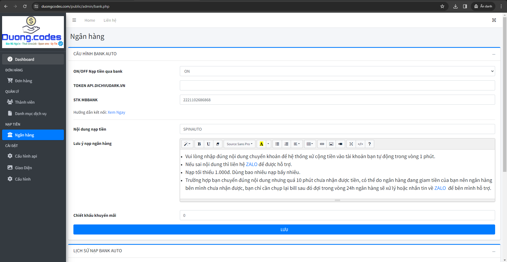 nạp tiền tự động