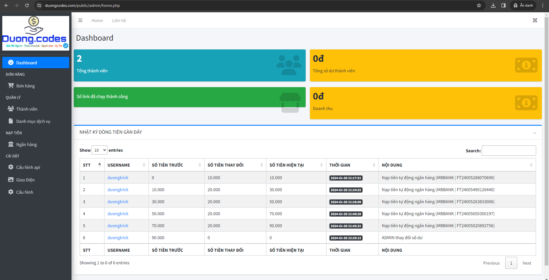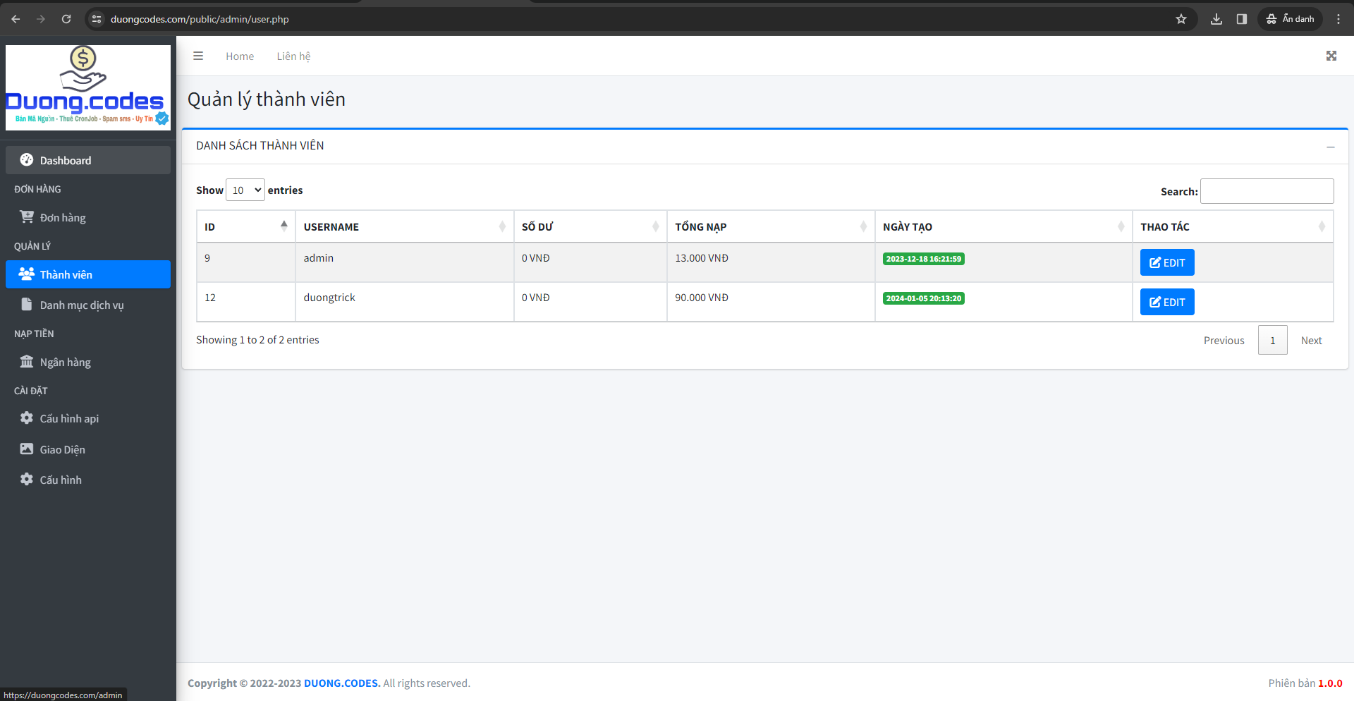 bấm xem demo để xem demo web sống