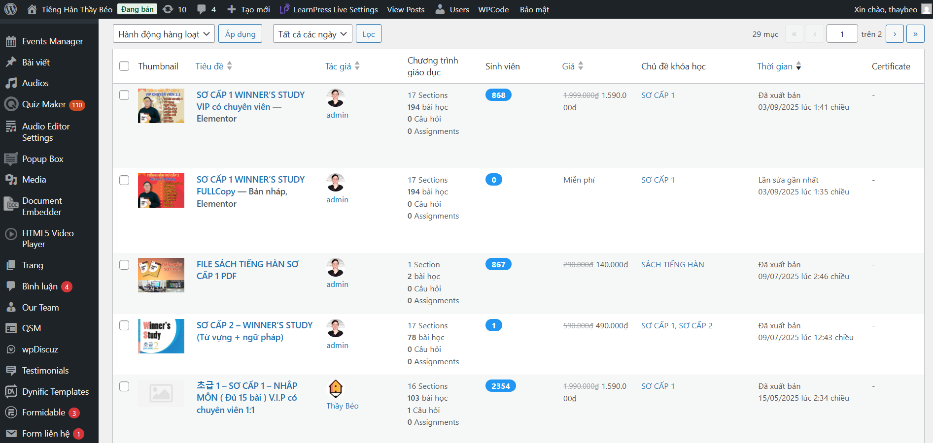 | MÃ NGUỒN | mã nguồn học ngoại ngữ online, bán khóa học, học online meeting trên web, tại quiz |